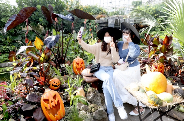 핼러윈 테마 전시는 사계절전시온실에 있는 열대온실 곳곳에서 포토존을 찾아볼 수 있고 11월 7일까지 전시한다.