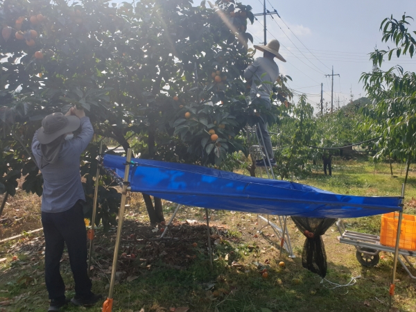 감 수확 시 예년과 다르게 감 수확기, 일명 막던져)를 활용함으로써 경영비를 획기적으로 줄이고 기존 방식보다 작업량이 50%이상 증가 할 수 있었다며 큰 만족감을 표하고 있다.
