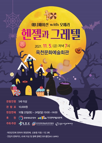 옥천군은 문화예술회관에서 11월 5일 저녁 7시에 2021년 문예회관과 함께하는 방방곡곡 문화공감 공모사업 선정 작품인 ‘애니메이션 with 오페라 ‘헨젤과 그레텔’’을 공연한다고 밝혔다.