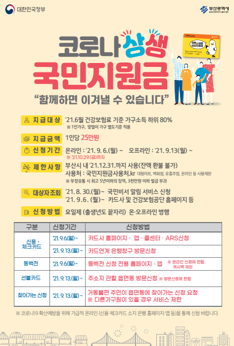 [충청뉴스큐] 부산시는 코로나 상생 국민지원금 신청이 오는 10월 29일 마감된다고 밝혔다.