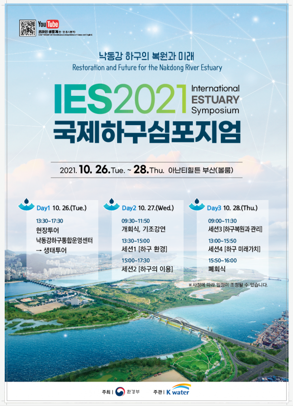 [충청뉴스큐] 환경부와 한국수자원공사는 낙동강 하구의 복원과 미래를 주제로 10월 26일부터 28일까지 부산 아난티힐튼호텔에서 ‘2021 국제하구 심포지엄’을 개최한다고 밝혔다.