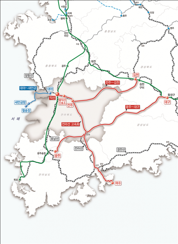 [충청뉴스큐] 제4차 국가철도망 구축계획에 반영된 전북도 3개【전주~김천 철도, 달빛내륙철도, 전라선】철도사업에 대한 사전타당성조사 용역이 빠르면 올해 안에 착수될 전망이다.