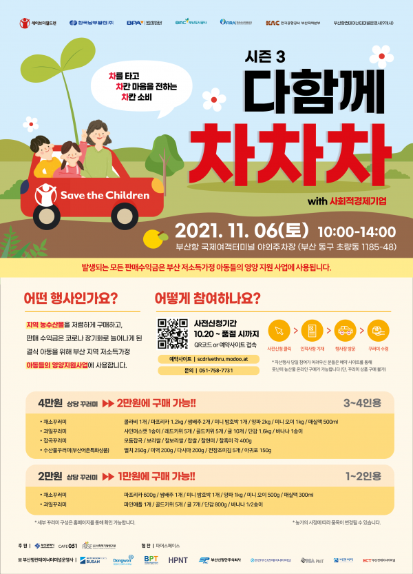 이번 행사는 부산시가 후원하고 세이브더칠드런, 한국남부발전, 부산항만공사, 부산도시공사, 한국수산자원공단, 한국공항공사 부산지역본부, 부산항컨테이너터미널운영사 등의 지역 기관이 공동으로 주최하며 주최 기관 임직원들이 자원봉사활동과 함께 농수산물 꾸러미를 판매하는 자선행사다.