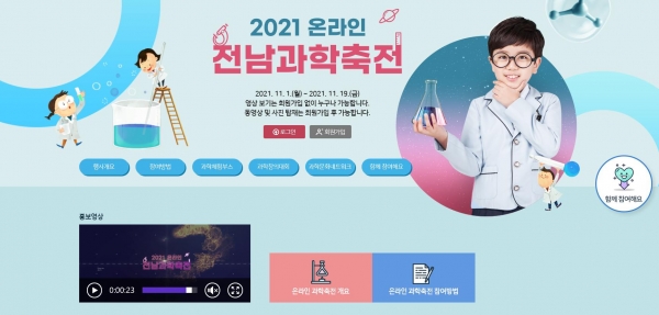 [충청뉴스큐] 전라남도와 전라남도교육청이 오는 11월 1일부터 3주 동안 ‘2021 온라인 전남과학축전’을 개최한다.