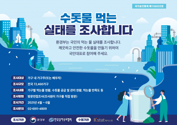 이번 실태조사는 전국 161개 지자체의 7만 2,460가구주를 대상으로 진행됐으며 조사 대상자들은 수돗물 먹는 방식과 수돗물에 대한 만족도를 포함해 총 38문항에 대해 응답했다.
