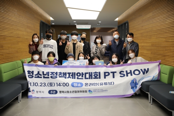[충청뉴스큐] 평택시 위탁기관인 평택시청소년재단 평택시청소년문화센터는 14기 평택시 청소년참여위원회와 함께 평택 靑 만세 청소년 정책제안대회 PT SHOW를 지난 23일 성황리에 마무리했다.