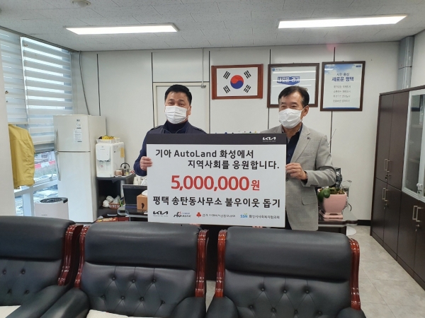 한편 안병철 송탄동장은 “코로나19로 힘든 시기에 소외된 이웃을 생각하는 마음으로 사업장 소재지가 아님에도 불구하고 기부금을 지원해주신 기아자동차지부 화성지회 관계자 모든 분들께 감사하다”고 말했다.