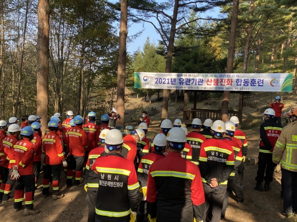 [충청뉴스큐] 서부지방산림청은 10월 27일 남원시 인월면 성산리 산80에서 함양국유림관리소, 남원시, 인월소방서와 함께 유관기관 합동 산불진화 훈련을 실시했다.