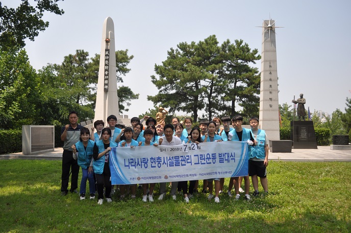 [충청뉴스큐]지난 21일 오후 2시 아산시에서는 재향군인회, 여성회, 청소년 봉사단이 아산안보공원을 찾아 ‘나라사랑 현충시설물 그린운동 발대식’을 가졌다.