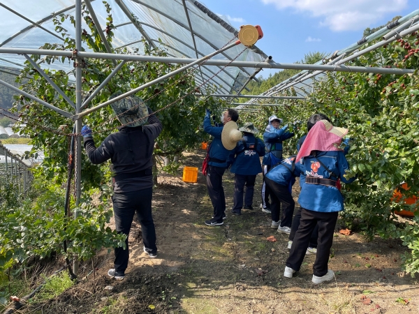 [충청뉴스큐] 보은군 농업기술센터는 지난 28일 코로나19로 인해 농촌 일손을 구하는데 어려움을 겪고 있는 대추재배 농가를 방문해 대추수확 작업 등 농촌 일손돕기 활동을 전개했다.