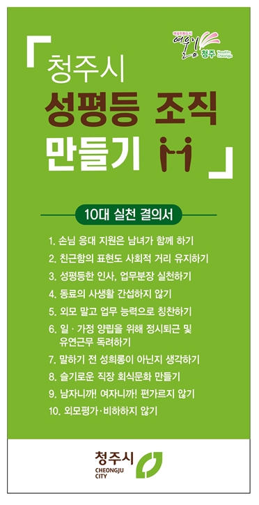 한범덕 청주시장은 “조직 내 성차별적 관행과 인식을 없애고 배려와 존중하는 문화를 조성해 전 직원이 행복하게 일할 수 있는 직장이 되도록 다함께 노력해주길 바란다”고 말했다.