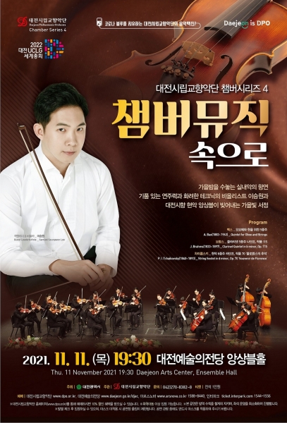[충청뉴스큐] 대전시립교향악단이 11월 11일 저녁 7시 30분, 대전예술의전당 앙상블홀에서 ‘챔버시리즈 4 챔버뮤직 속으로’를 연주한다.