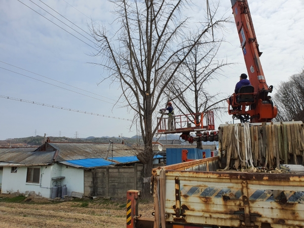 군은 특히 군민이 직접 제거하기 어려운 피해 수목을 수시 접수하고 있으며 수목위치, 장비 진입 가능 여부, 현장조사 확인과 작업 시급성 등을 고려해 사업을 추진하고 있다.