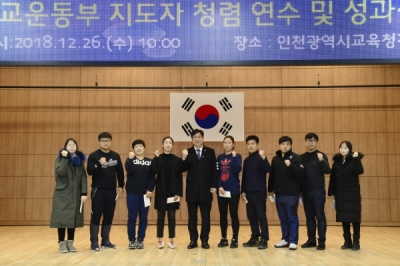 [충청뉴스큐] 인천광역시교육청은 26일 시교육청 정보지원센터 대회의실에서 초·중·고등학교 운동부 지도자등 350여명을 대상으로 청렴 연수를 실시했다. 또한 제47회 전국소년체육대회 및 제99회 전국체육대회에서 입상한 학생을 지도한 학교운동부지도자 105명을 대상으로“2018학년도 학교운동부지도자 성과 상여금 전달식”을 개최했다.