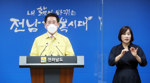 [충청뉴스큐] 김영록 전라남도지사는 1일 도청 브리핑룸에서 “정부 방침에 따라 ‘단계적 일상회복’으로 전환, 방역조치를 점진적으로 완화함으로써 소중한 일상과 경제는 살려나가되 방역수칙은 변함없이 철저히 지키도록 하겠다”고 밝혔다.