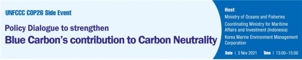 행사는 ‘탄소중립을 위한 블루카본 정책대화’라는 주제로 진행되며 글래스고에 위치한 SEC에서 11월 2일과 3일 이틀간 진행된다.