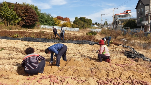 지동 마을만들기협의회, 지동 주민자치위원회, 지동 통장협의회 등 3개 단체 회원들은 10월 29일 지동마을 공유텃밭에서 고구마 100박스를 수확했다.