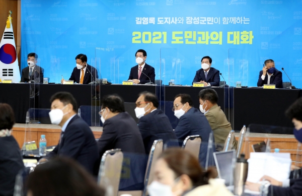 이날 도민과의 대화엔 김한종 전남도의회 의장, 유두석 장성군수, 임동섭 장성군의회 의장, 유성수 도의원 등 19명이 현장 참석했다.