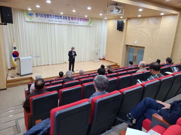 [충청뉴스큐] 경기도농업기술원이 지난 1일 화성 농기원 곤충자원센터에서 경기도양봉연구연합회 운영위원 20여명을 대상으로 양봉산업 발전을 위한 ‘양봉산업 육성 최신동향 교육’을 했다.