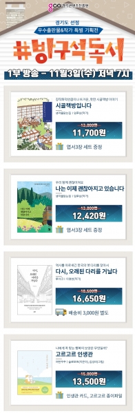 한편 ‘방구석 독서 라이브 쇼핑 특별 기획전’은 ‘경기도형 문화뉴딜 시즌II 프로젝트’의 일환으로 경기도가 올해 9월 처음 ‘추석특집 라이브 쇼핑 특별 기획전’에 이어 시행하는 사업이다.