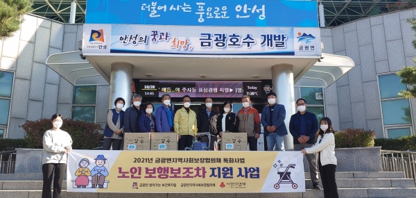 [충청뉴스큐] 금광면 지역사회보장협의체가 거동이 불편한 어르신들의 건강한 노후생활을 지원하기 위해 지난달 28일 보행보조차 12대와 보행워커 2대를 전달했다.