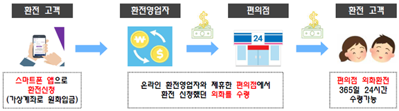 이를 통해 온라인환전영업자는 고객에게 환전대금을 전달하는 업무를 편의점에 위탁함으로써 국민들의 환전서비스 접근성이 제고됐다.