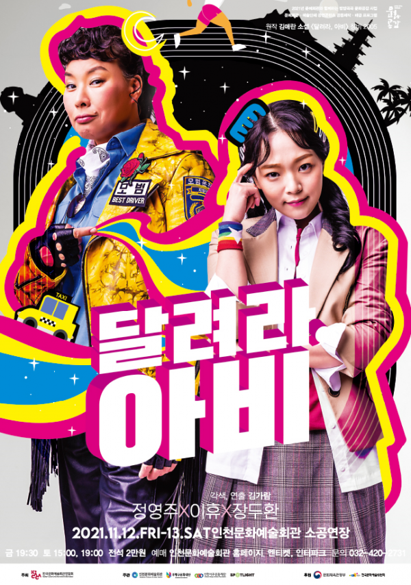 동명 소설을 원작으로 하는 연극 ‘달려라, 아비’는 남편의 부재 속에서도 택시 운전을 하며 자식을 길러낸 어머니와 자기연민에 빠지지 않고 긍정적인 삶을 그려내는 딸의 이야기를 유쾌하고 감동적으로 그려내는 작품이다.