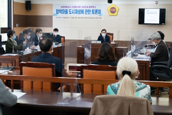 ‘인천시의회 상호문화도시 구현을 위한 문화다양성 정책연구회’는 3일 행정안전위원회 회의실에서 함박마을 도시재생에 관한 토론회를 개최했다.
