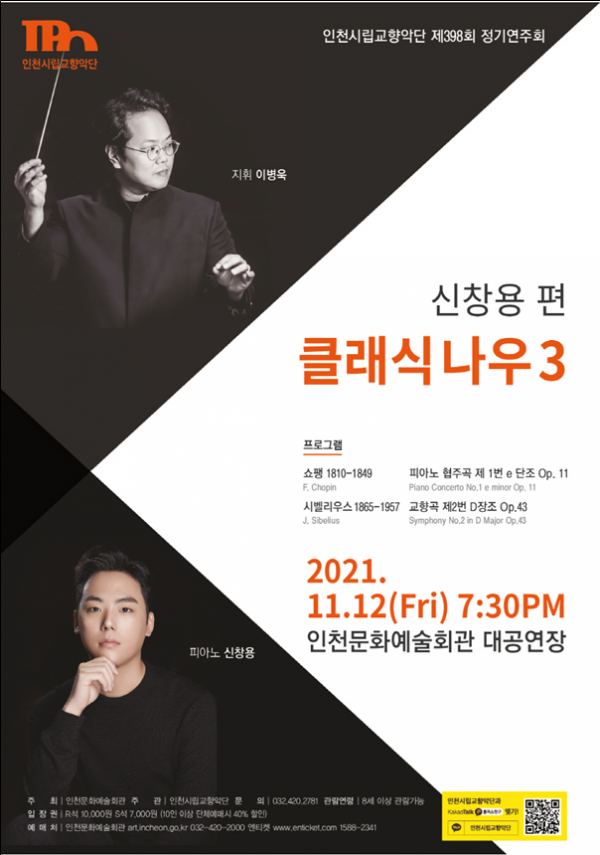 ‘클래식 나우Ⅲ. 신창용 편’은 단계적 일상회복 방침에 따라 인천문화예술회관 대공연장 객석의 70%까지 좌석을 예매 오픈한다.