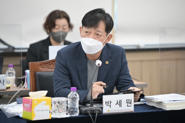 [충청뉴스큐] 경기도의회 교육행정위원회 박세원 의원은 5일 시흥교육지원청에서 실시된 시흥·화성오산·부천·안산교육지원청에 대한 2021년 행정사무감사에서 학교가 학교 특성에 맞는 공기정화장치를 선정해 설치할 수 있도록 교육지원청이 제품에 대한 설명과 가이드라인 제시 등 일선 학교가 혼란에 빠지지 않도록 적극적으로 지원할 것을 주문했다.