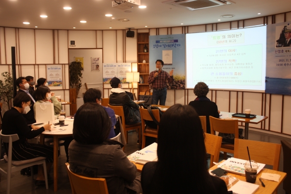 2019년 이후 2년 만에 개최된 이번 강좌에는 ‘트멍에 살어리랏다’를 펴낸 신정호 전 해군제독이 강사자로 참여해 도외에 거주하는 청·장년층을 대상으로 강연을 진행했다.