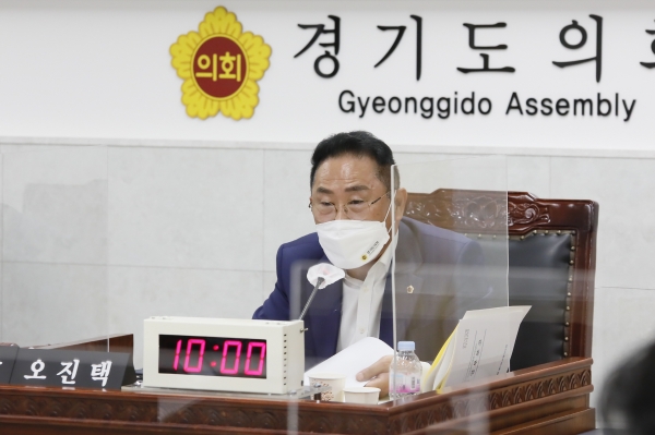 [충청뉴스큐] 경기도의회 건설교통위원회 오진택 부위원장은 5일 경기도교통연수원에 대한 2021년 행정사무감사에서 공직선거법 위반 논란으로 현재 직위해제 상태인 사무처장의 징계절차 추진상황에 대해 질문하며 내부승진을 통한 사무처장 채용과 정년 62세 상향 등에 대해 집중 질의했다.