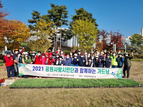 [충청뉴스큐] 수원시가 공원사랑시민단과 함께 5일 팔달구 화서동 서호꽃뫼공원에서 합동 가드닝 활동을 했다.