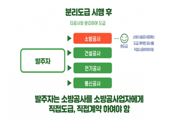 지난해 9월부터 시행된 소방시설공사업법에 따라 소방시설공사는 건축공사 등 다른 공사와 분리해 도급해야 하기 때문이다.