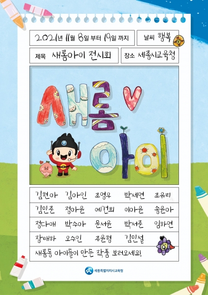 [충청뉴스큐] 세종특별자치시교육청은 오는 11월 19일까지 본청 1층 한누리길 그림산책에서 ‘새롬아이’ 전시회를 개최한다.