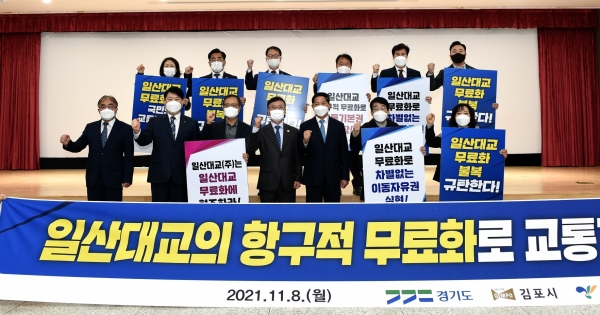 정하영 김포시장은 “교통은 차별 없이 마땅히 보장받아야 할 보편적 서비스”며 “국민연금공단과 일산대교㈜는 차별적 교통서비스를 감내해온 서북권 도민의 아픔을 외면치 말고 항구적 무료화에 협조해 달라”고 강조했다.