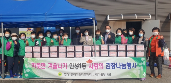 정순자 안성1동 새마을부녀회장은 “겨울의 문턱에서 코로나19로 더욱 어려운 이웃을 위해 부녀회원님들이 정성으로 담근 김치를 전달하기 위해 이번 행사를 준비했다”며 “앞으로 우리 이웃에게 관심을 가지고 열심히 봉사하겠다”며 의지를 다졌다.