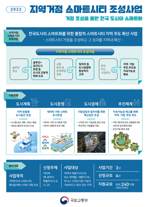공모참여를 희망하는 지자체, 기업 등은 국토교통부 누리집이나 스마트시티 종합포털 누리집에서 세부적인 공모계획을 확인할 수 있다.