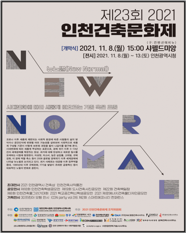 ‘인천건축문화제’는 1999년부터 매년 개최했으나, 올해는 23번째로 새로운 변화에 맞춰 새로운 기준을 만들어가는 의미로‘뉴노멀: 새로운 기준’이라는 주제로 꾸며졌다.