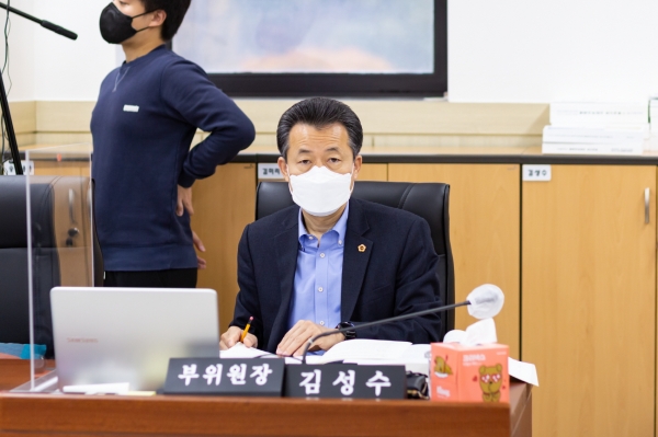 [충청뉴스큐] 경기도의회 여성가족평생교육위원회 김성수 부위원장은 8일 상임위 회의실에서 열린 2021년 행정사무감사에서 경기도평생교육국 박승삼국장에게 주요 업무를 보고받고 명시이월 및 사고이월 등 예산 전반에 대한 운영실태 점검 및 학교용지부담금 체납금에 대한 부과·징수를 철저히 할 것을 촉구했다.