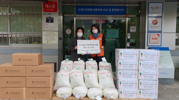 [충청뉴스큐] 수원시 농업기술센터는 9일 수원시자원봉사센터에 “먹거리 취약계층에게 나눠 달라”며 고구마·햅쌀·사과 등 총 705㎏의 수확물을 전달했다.