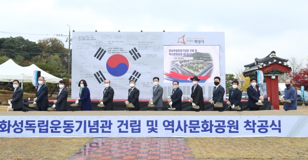 한편 이날 착공식에는 화성 독립운동가의 후손들과 서철모 화성시장, 안소헌 광복회 화성시지회장, 원유민 화성시의회 의장, 송선영 시의원, 황광용 시의원 등 60여명이 참석한 가운데 국민의례를 시작으로 기념사와 퍼포먼스, 시삽 등이 진행됐다.