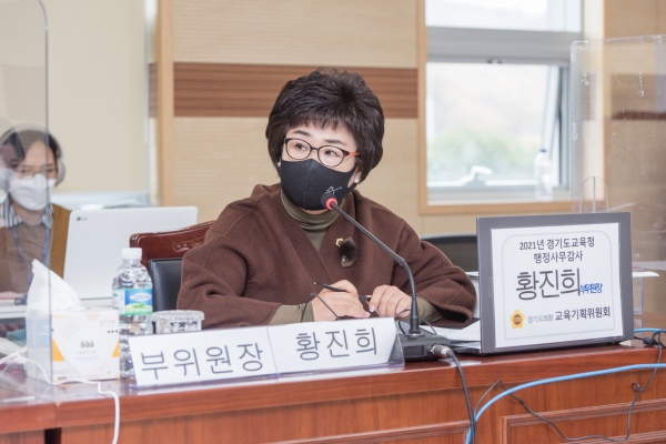 [충청뉴스큐] 경기도의회 교육기획위원회 황진희 의원은 11월 9일 경기도의회 제356회 정례회 중 구리남양주교육지원청에서 진행된 구리남양주·동두천양주·고양·연천교육지원청을 대상으로 한 경기도교육청 행정사무감사에서 학교 행정 안정화를 위한 현장 중심의 4단계 스쿨넷 사업 추진 필요성을 제기했다.