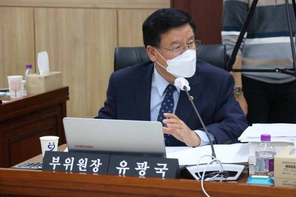 [충청뉴스큐] 경기도의회 문화체육관광위원회 유광국 부위원장은 9일 문화체육관광위원회 상임위회의실에서 열린 2021년 경기아트센터 행정사무감사에서 업무보고 등 제출자료 부실과 형식적인 문화나눔사업, 불용액 관리에 따른 문제를 지적했다.