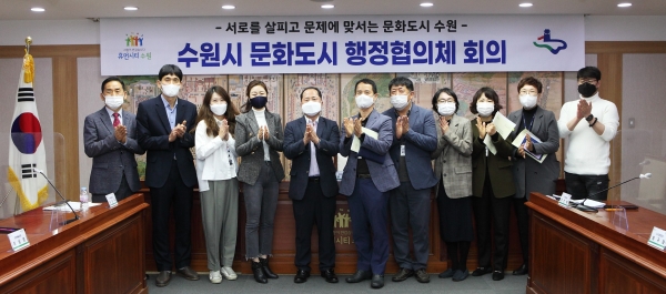 [충청뉴스큐] 수원시 문화도시 행정협의체가 9일 수원시청 상황실에서 제1차 회의를 열고 문화도시 예비사업 추진상황을 점검했다.