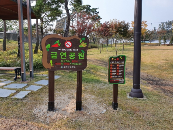 이에 따라 괴산군 보건소는 발효문화공원을 비롯한 관내 조성이 완료된 5개의 도시공원에 금연공원임을 알리는 금연표지판 7개, 보도표지 4개를 추가로 설치했다.