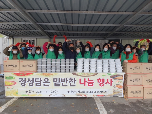 최순희 세교동 새마을부녀회 회장은 “코로나19가 계속되면서 이웃의 지친 심신을 달래기 위해 새마을 가족 모두가 정성을 담아 밑반찬을 준비했다”며 “저희가 만든 밑반찬으로 식사하셔서 추위를 건강히 이겨냈으면 좋겠다”고 말했다.