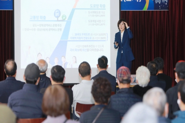 이날 서운면을 방문한 김보라 안성시장은 ‘따뜻한 도시, 꿈꾸는 도시, 상상력의 도시, 편안한 도시, 즐거운 도시’라는 주제로 지난 1년 6개월의 시정 추진 경과와 앞으로의 비전을 직접 설명했다.