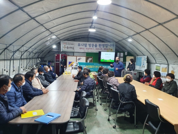 이번 현장 체험 교육은 안성시 선도 체험농장인 유나팜에서 진행됐는데, 안성시 저탄소 농업 실천 리더 양성을 위한 교육과 농촌 융복합 산업 선도 농가 육성을 위한 체험농장 견학 및 새싹인삼 심기 체험이 실시됐다.
