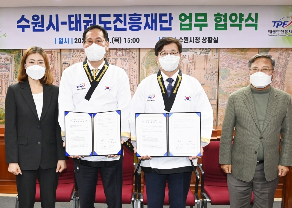 수원시와 태권도진흥재단은 태권도 진흥·보급을 위해 협력하고 주요 사업을 할 때 장소·시설 등을 사용할 수 있도록 편의를 제공하기로 했다.